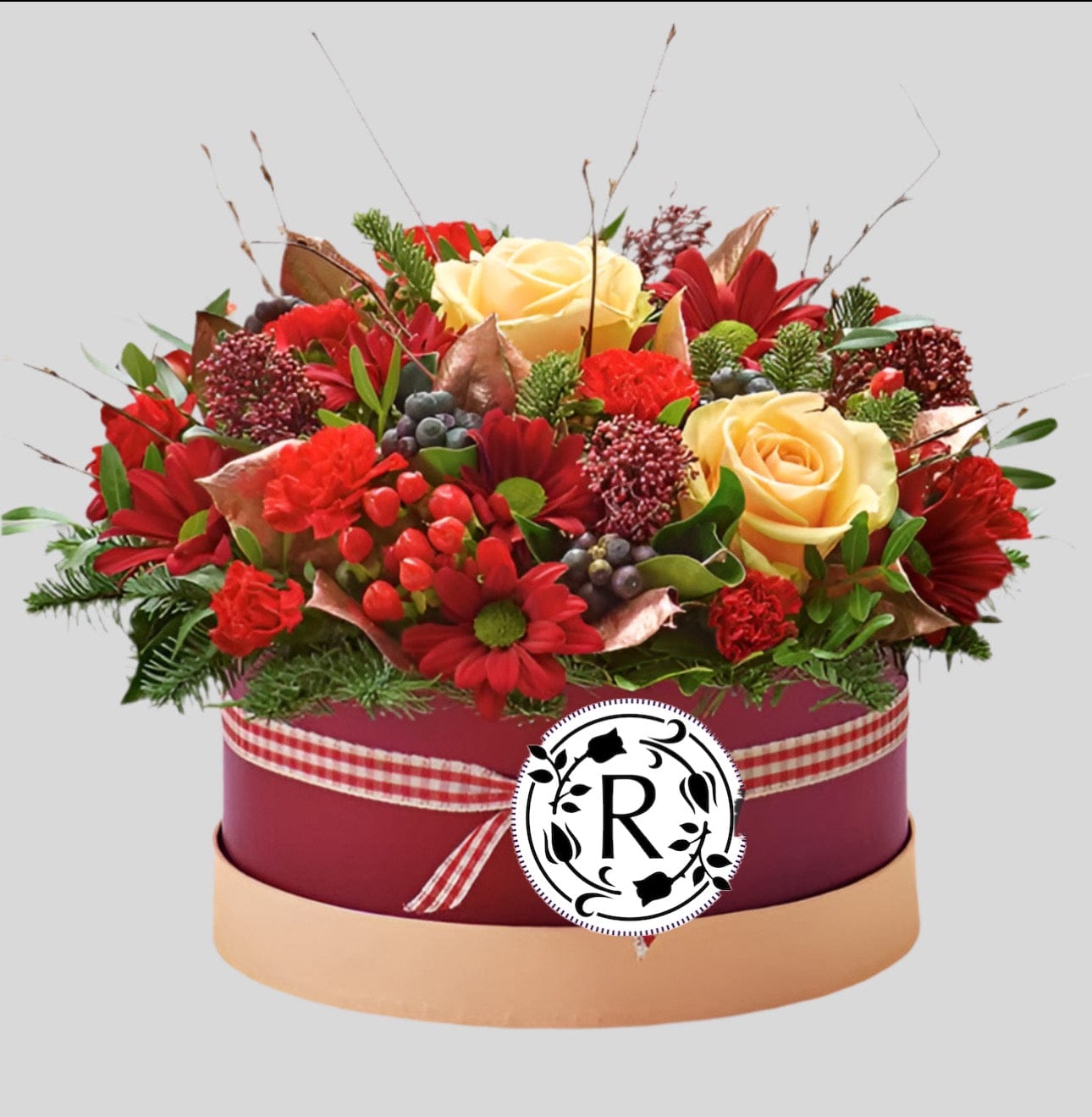 Celebrate the holidays in style with our Classic Christmas Hatbox by Rams Florists! Perfect for gifting or decorating, this beautifully designed hatbox is sure to add a touch of elegance to any home. Spread the festive spirit with this timeless piece.