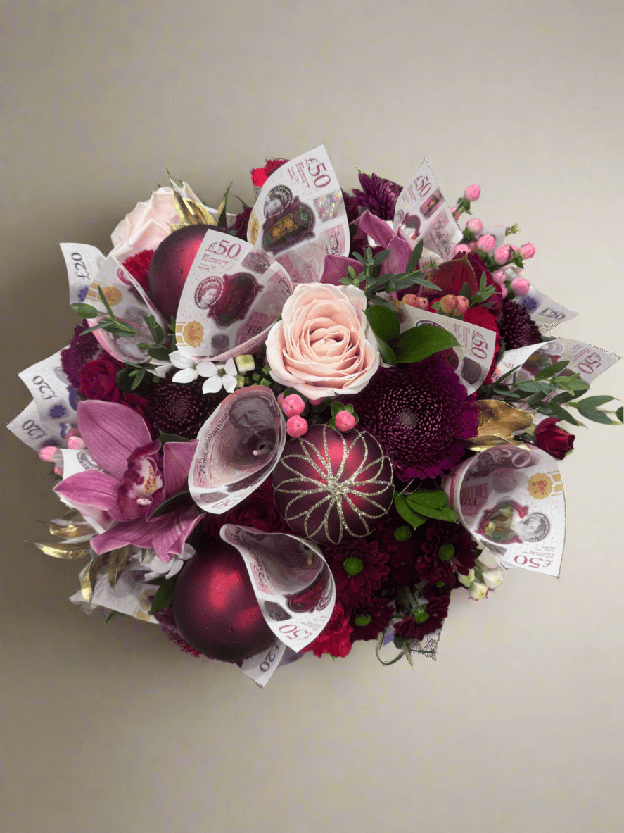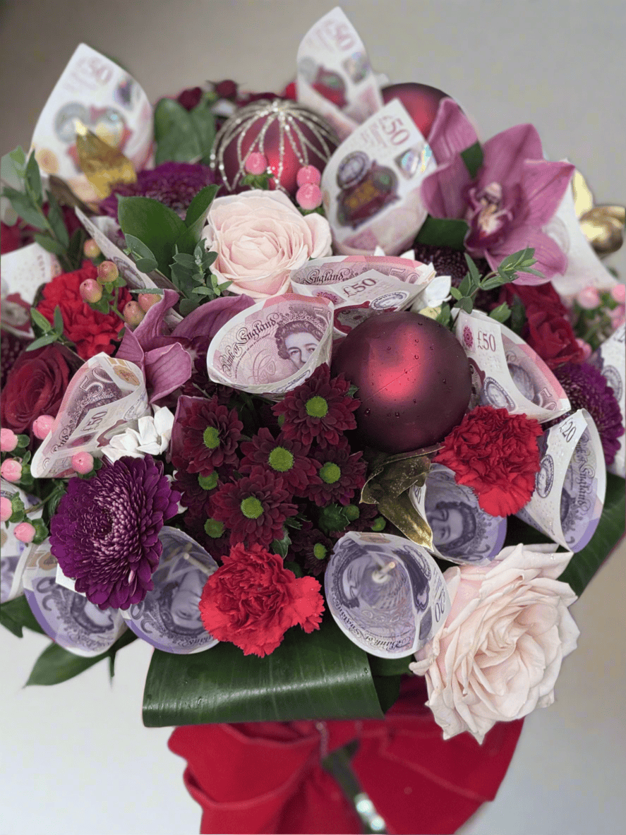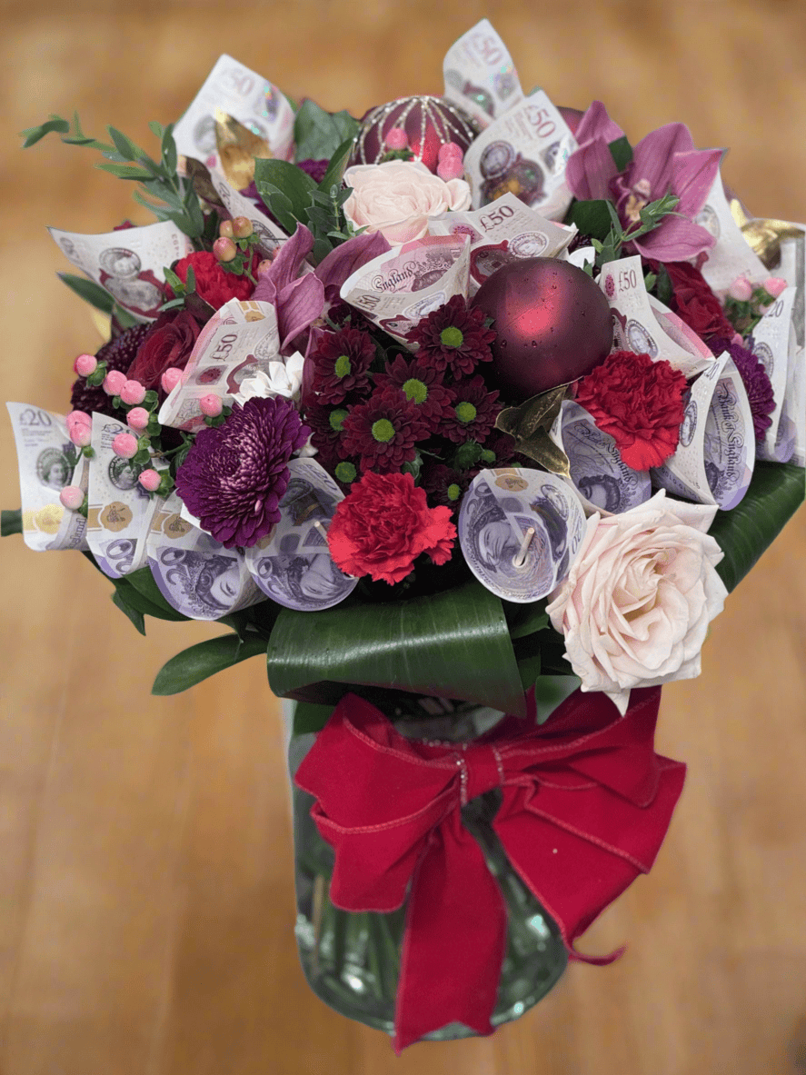 Get ready for the holiday season with our Christmas Red Glamour Money Bouquet! Each bouquet is carefully crafted with red, festive details and filled with money, adding a touch of glamour to your celebrations. Give the gift of style and practicality with this unique bouquet. Perfect for spreading holiday cheer!