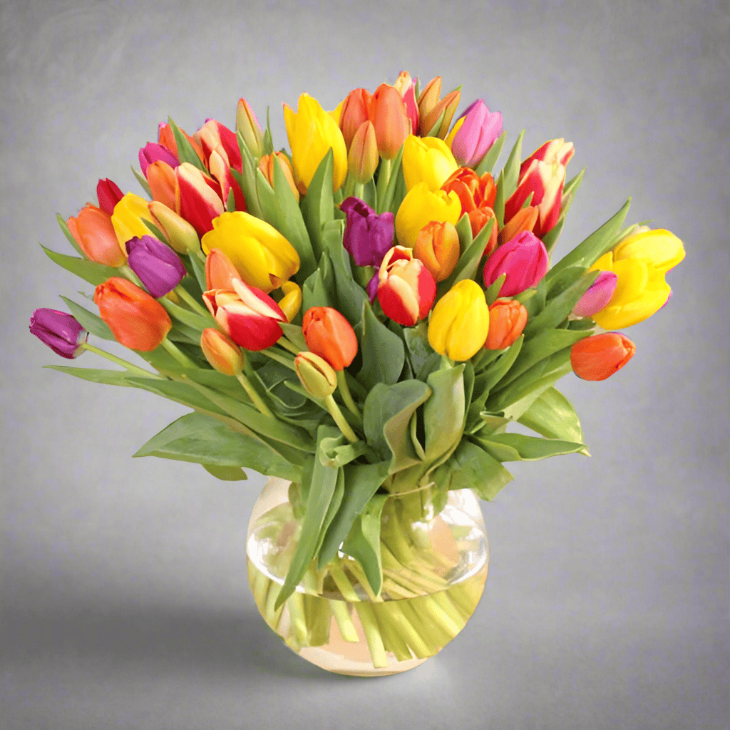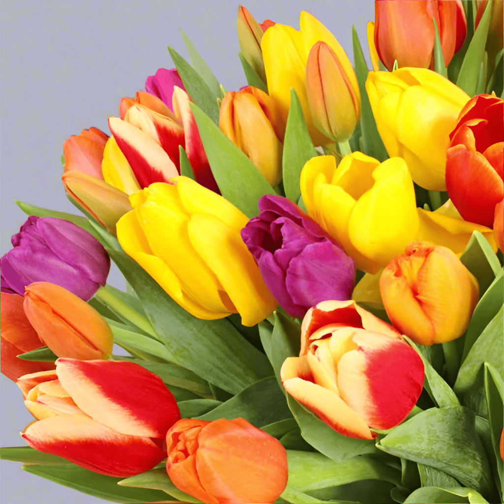 Experience the beauty of spring with our Large Bouquet of 50 Mixed Tulips. This vibrant bouquet features a stunning array of colours, perfect for brightening any occasion. Ideal for celebrations, special events, or as a thoughtful gift, these mixed tulips convey joy and elegance. Crafted with care, each bouquet is designed to impress and guarantee smiles. Order now to bring the essence of spring indoors and elevate your floral arrangements. Enjoy fast delivery and impeccable service as you share the joy of tulips with loved ones.