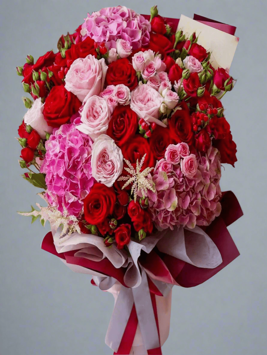 Experience the beauty of our luxurious  Rosy Radiance Hand tied Bouquet from Rams Florist artist. Handcrafted with expert care and attention to detail, this stunning bouquet is sure to add a touch of elegance to any occasion. With vibrant hues and a classic hand-tied design, this bouquet is a must-have for any flower lover.