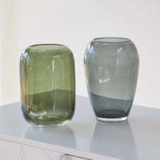 This sophisticated olive glass vase adds a touch of style to any finished product. 18cm H x 8cm Opening diameter