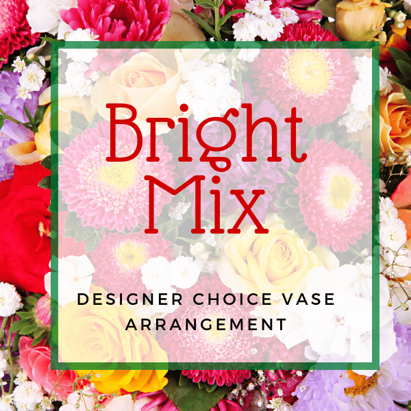 Made at our flower shop in a glass vase, our designer will create a bright flower arrangement of the freshest flowers in stock. They will love this custom bright flower bouquet!